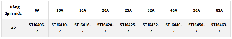 Dòng định mức 6A đến 63A