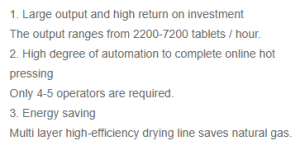 Sản lượng dao động từ 2200-7200 viên/giờ.