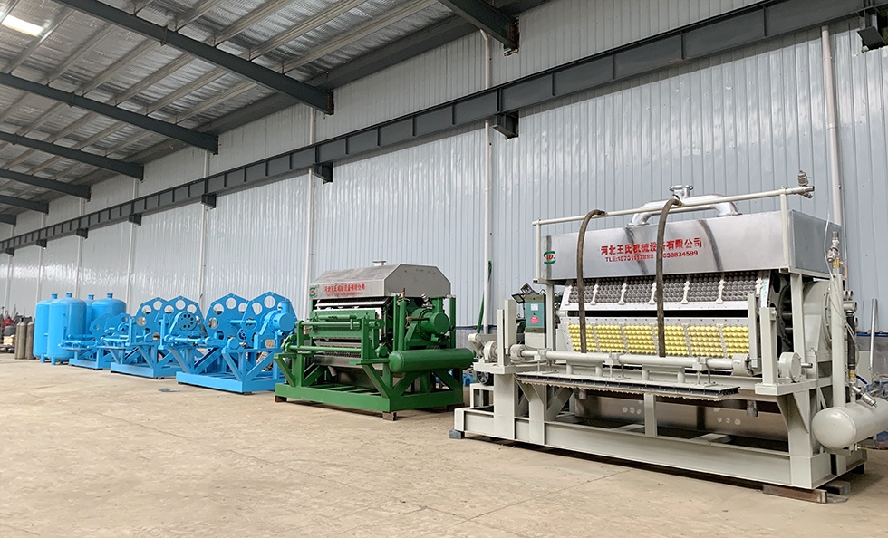 Dây chuyền sản xuất khay đựng trứng tự động bao gồm hệ thống nghiền bột, hệ thống đúc, hệ thống sấy, hệ thống xếp chồng, hệ thống chân không, hệ thống nước áp suất cao và hệ thống nén khí. Chuyên sản xuất hộp đựng trứng 10, 12, 15 và 18. Giấy thải như báo thải, giấy carton thải, giấy văn phòng và vật liệu còn sót lại được sử dụng làm nguyên liệu thô, được chế biến thành một nồng độ bùn nhất định thông qua quá trình phân hủy thủy lực, lọc, phun nước và các quy trình khác. Nó được hấp phụ chân không vào phôi ướt trên khuôn kim loại đặc biệt thông qua hệ thống tạo hình, sau đó được xếp chồng sau khi sấy khô trên dây chuyền sấy và ép nóng trực tuyến.