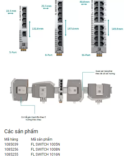 Fl Switch 1000N là dòng compact unmanaged switch mới ra đời cúa Phoenix Contact với tối đa 16 cổng tốc độ 10/100mps. Điểm khác biệt cơ bản cúa dòng Fl Switch 1000N so với dòng switch trước đây là :