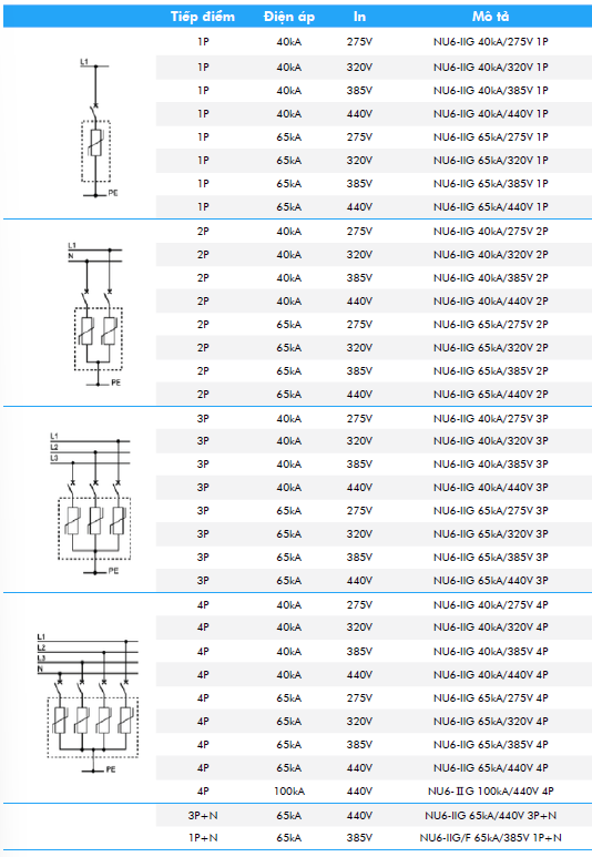 Đặt mua NU6-II G Chống sét lan truyền (không tích hợp tiếp điểm phụ)