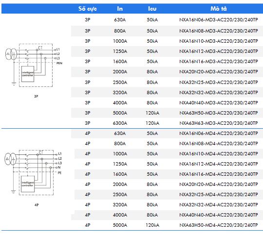 Đặt mua NXA Series Máy cắt không khí (ACB)