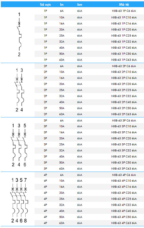 Đặt mua NXB-63 Cầu dao tự động loại nhỏ (MCB)
